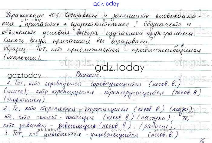 На страницах сайта gdz.today вы найдете учебный и вспомогательный материал, направленный на улучшения знаний школьной программы. ГДЗ - онлайн мир знаний Решение. Упражнения 108 Учебнику по Русскому языку для 7 класса Баранов, Ладыженская Просвещение, Просвещение 2015, 2022