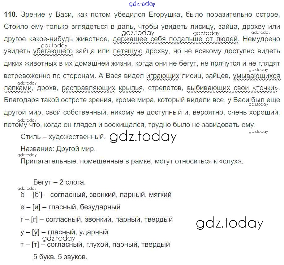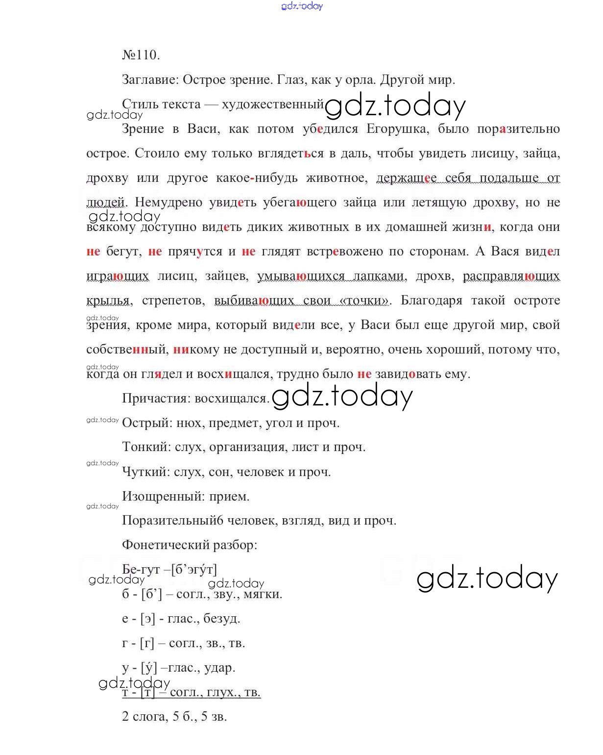 На страницах сайта gdz.today вы найдете учебный и вспомогательный материал, направленный на улучшения знаний школьной программы. ГДЗ - онлайн мир знаний Решение к упражнениям 110 Учебнику по Русскому языку для 7 класса Баранов, Ладыженская Просвещение УМК 2015