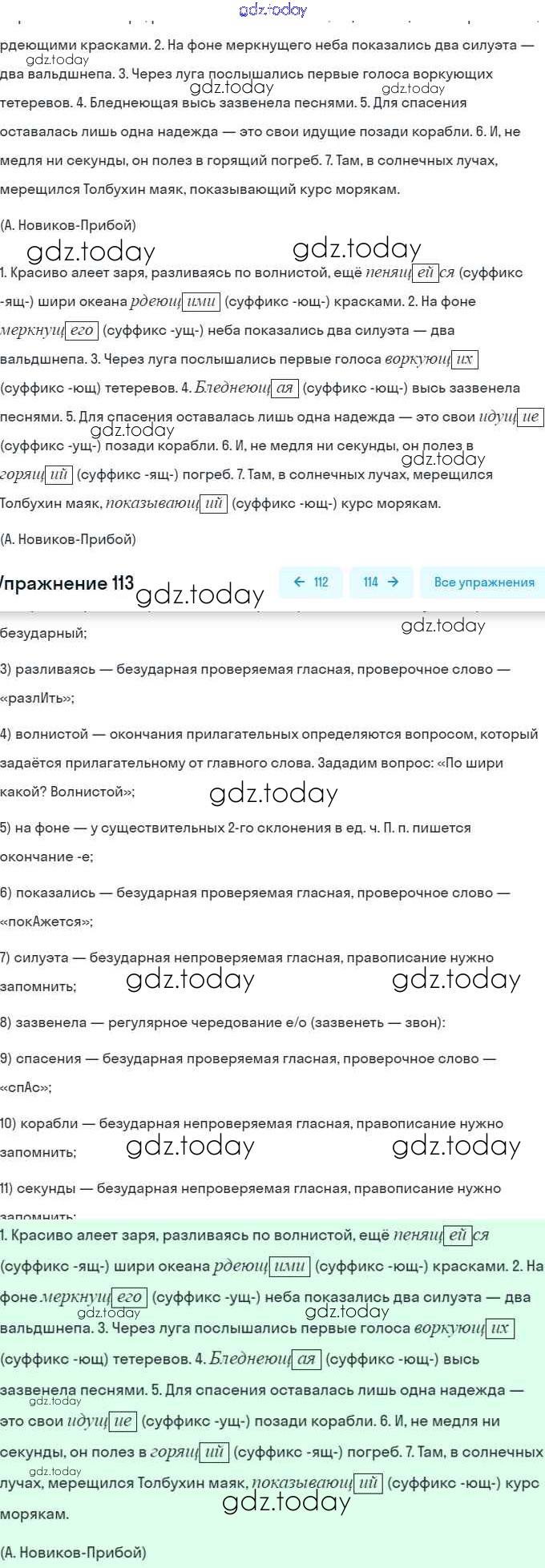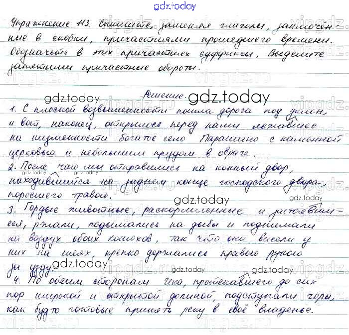 На страницах сайта gdz.today вы найдете учебный и вспомогательный материал, направленный на улучшения знаний школьной программы. ГДЗ - онлайн мир знаний Решение. Упражнения 113 Учебнику по Русскому языку для 7 класса Баранов, Ладыженская Просвещение, Просвещение 2015, 2022