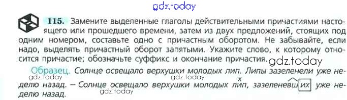 На страницах сайта gdz.today вы найдете учебный и вспомогательный материал, направленный на улучшения знаний школьной программы. ГДЗ - онлайн мир знаний Решение к упражнениям 115 Учебнику по Русскому языку для 7 класса Баранов, Ладыженская Просвещение УМК 2015