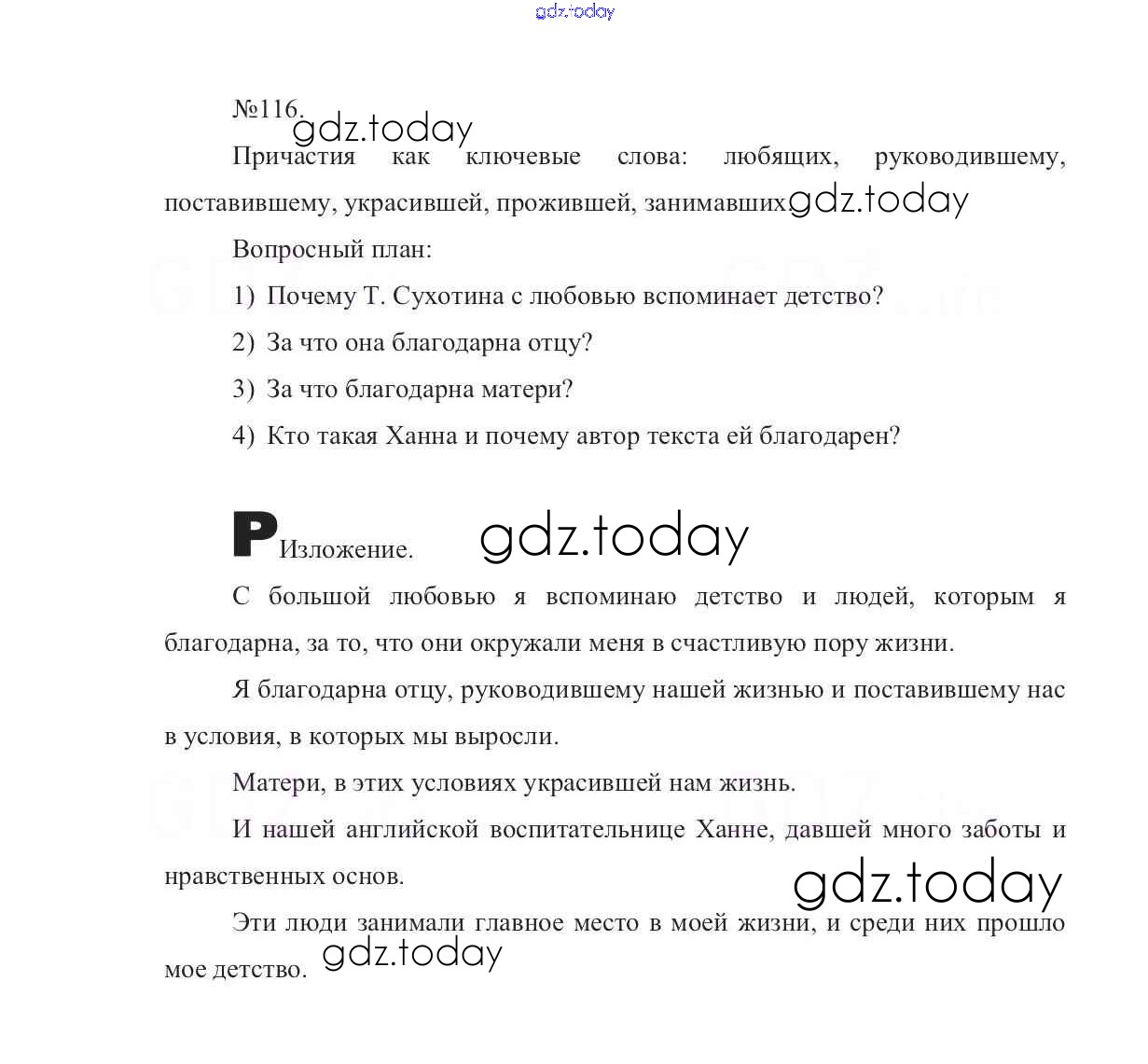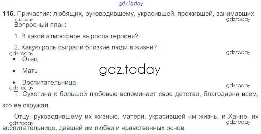 На страницах сайта gdz.today вы найдете учебный и вспомогательный материал, направленный на улучшения знаний школьной программы. ГДЗ - онлайн мир знаний Решение к упражнениям 116 Учебнику по Русскому языку для 7 класса Баранов, Ладыженская Просвещение УМК 2015