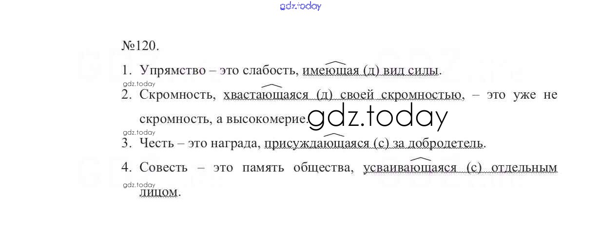 На страницах сайта gdz.today вы найдете учебный и вспомогательный материал, направленный на улучшения знаний школьной программы. ГДЗ - онлайн мир знаний Решение к упражнениям 120 Учебнику по Русскому языку для 7 класса Баранов, Ладыженская Просвещение УМК 2015
