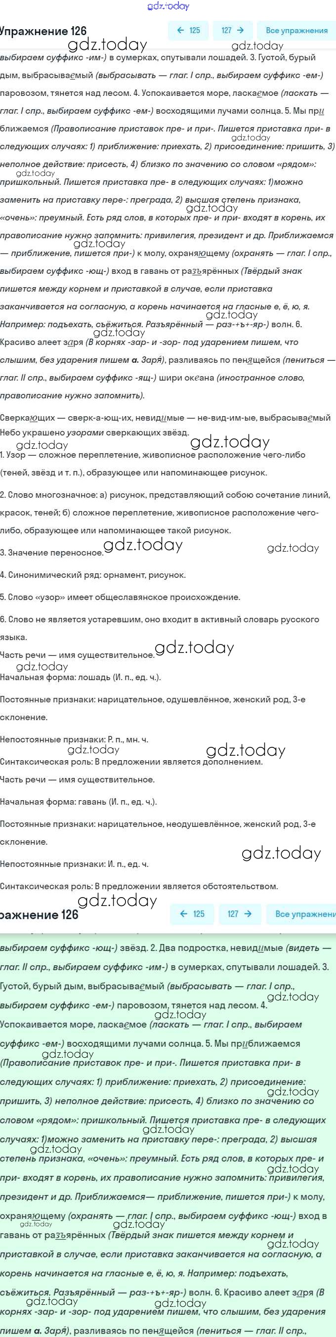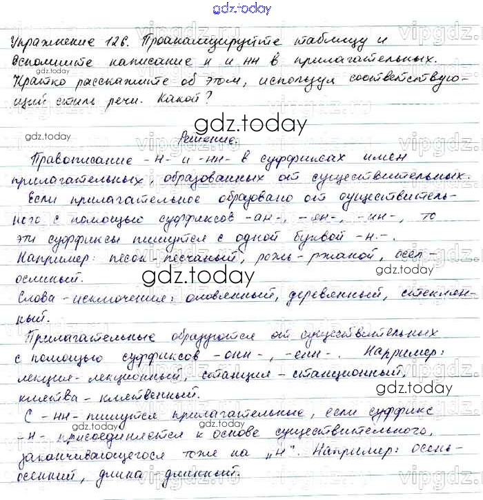 На страницах сайта gdz.today вы найдете учебный и вспомогательный материал, направленный на улучшения знаний школьной программы. ГДЗ - онлайн мир знаний Решение. Упражнения 126 Учебнику по Русскому языку для 7 класса Баранов, Ладыженская Просвещение, Просвещение 2015, 2022