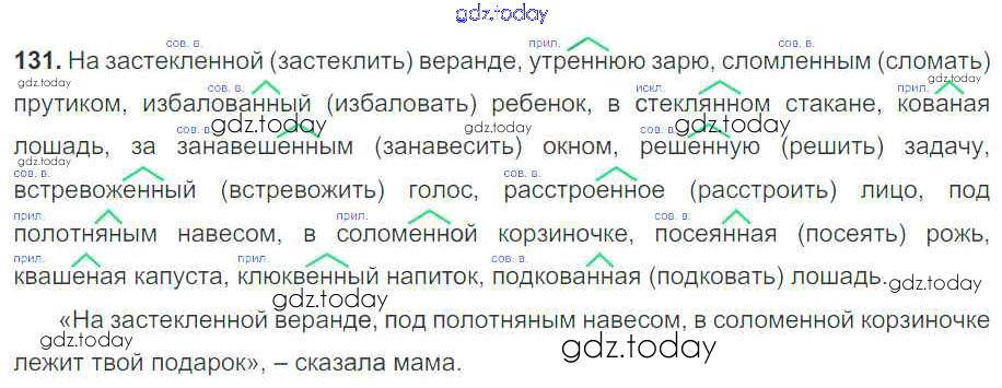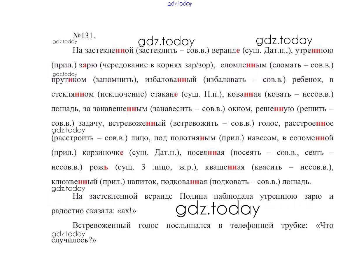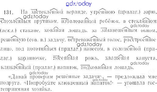 На страницах сайта gdz.today вы найдете учебный и вспомогательный материал, направленный на улучшения знаний школьной программы. ГДЗ - онлайн мир знаний Решение к упражнениям 131 Учебнику по Русскому языку для 7 класса Баранов, Ладыженская Просвещение УМК 2015