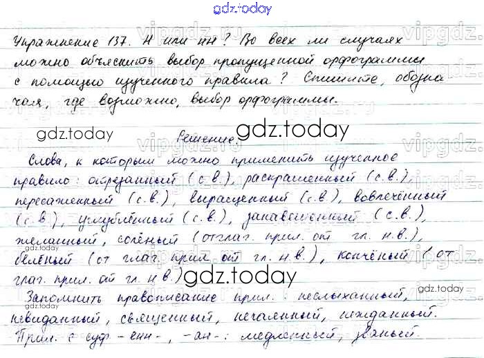 На страницах сайта gdz.today вы найдете учебный и вспомогательный материал, направленный на улучшения знаний школьной программы. ГДЗ - онлайн мир знаний Решение. Упражнения 137 Учебнику по Русскому языку для 7 класса Баранов, Ладыженская Просвещение, Просвещение 2015, 2022