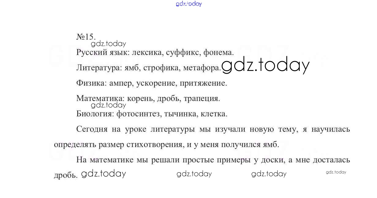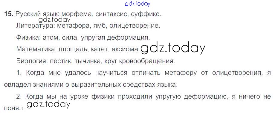 На страницах сайта gdz.today вы найдете учебный и вспомогательный материал, направленный на улучшения знаний школьной программы. ГДЗ - онлайн мир знаний Решение к упражнениям 15 Учебнику по Русскому языку для 7 класса Баранов, Ладыженская Просвещение УМК 2015