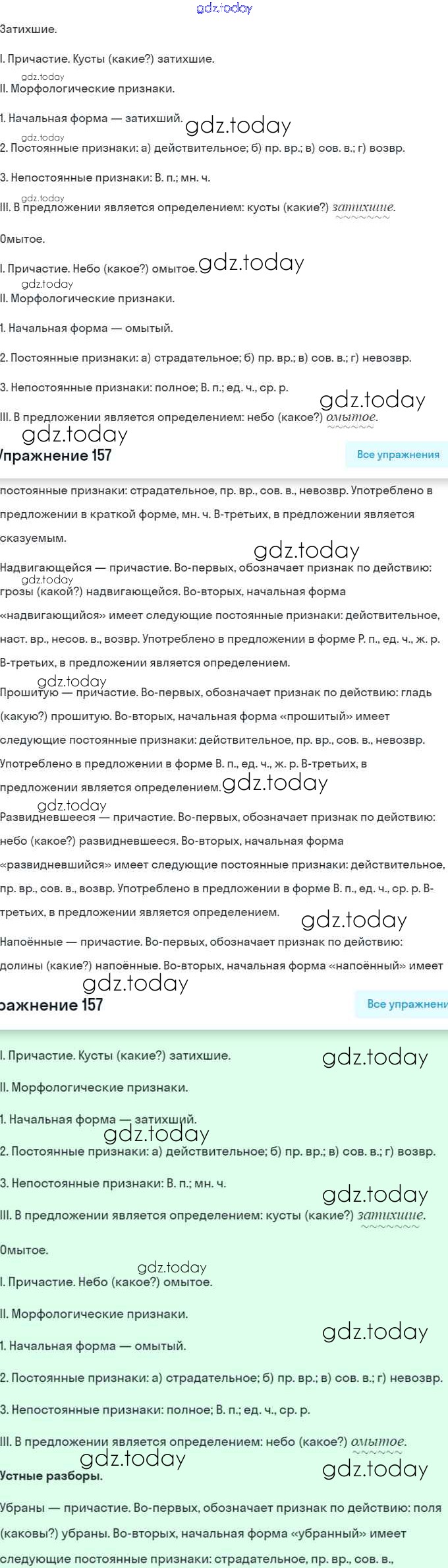 На страницах сайта gdz.today вы найдете учебный и вспомогательный материал, направленный на улучшения знаний школьной программы. ГДЗ - онлайн мир знаний Решение. Упражнения 157 Учебнику по Русскому языку для 7 класса Баранов, Ладыженская Просвещение, Просвещение 2015, 2022