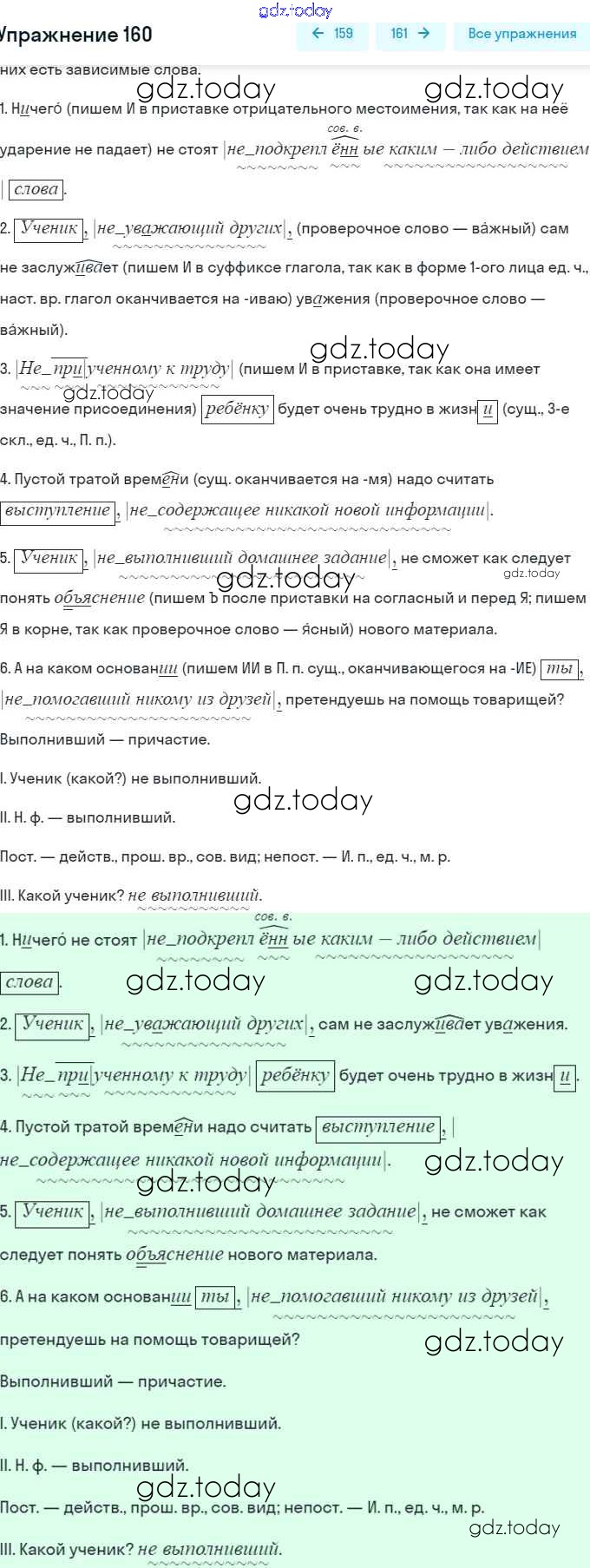 На страницах сайта gdz.today вы найдете учебный и вспомогательный материал, направленный на улучшения знаний школьной программы. ГДЗ - онлайн мир знаний Решение. Упражнения 160 Учебнику по Русскому языку для 7 класса Баранов, Ладыженская Просвещение, Просвещение 2015, 2022
