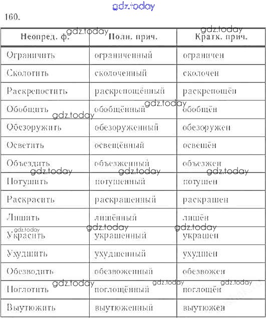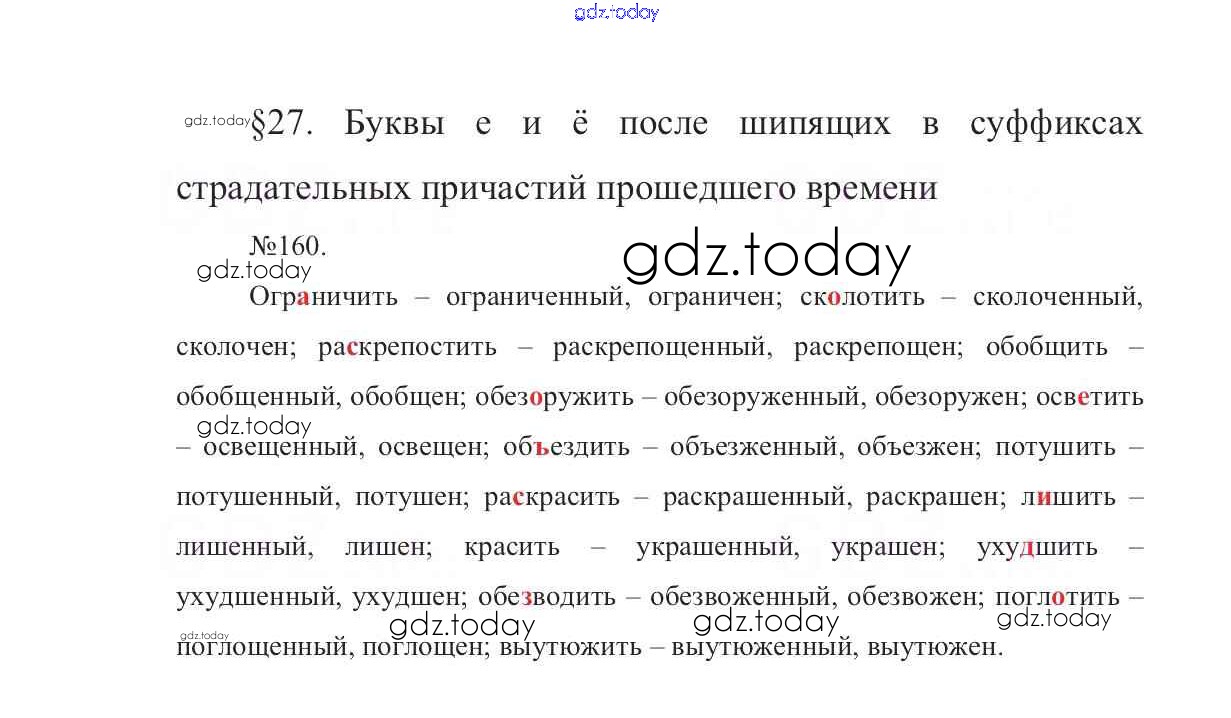 На страницах сайта gdz.today вы найдете учебный и вспомогательный материал, направленный на улучшения знаний школьной программы. ГДЗ - онлайн мир знаний Решение к упражнениям 160 Учебнику по Русскому языку для 7 класса Баранов, Ладыженская Просвещение УМК 2015