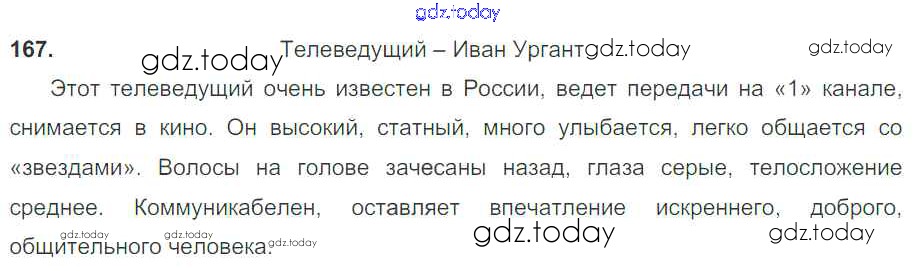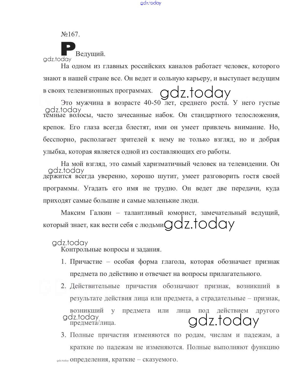 На страницах сайта gdz.today вы найдете учебный и вспомогательный материал, направленный на улучшения знаний школьной программы. ГДЗ - онлайн мир знаний Решение к упражнениям 167 Учебнику по Русскому языку для 7 класса Баранов, Ладыженская Просвещение УМК 2015