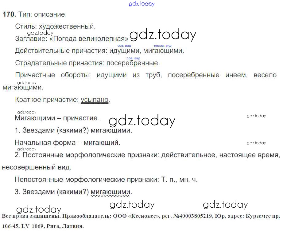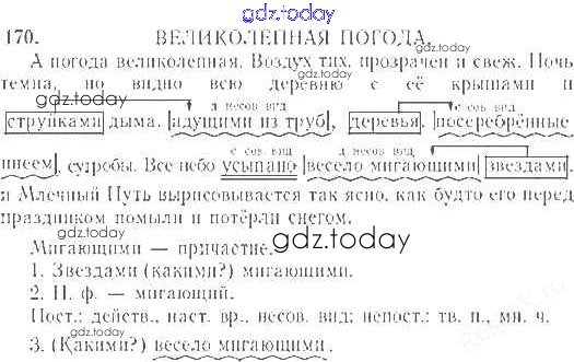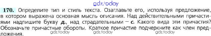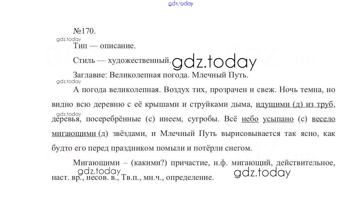 На страницах сайта gdz.today вы найдете учебный и вспомогательный материал, направленный на улучшения знаний школьной программы. ГДЗ - онлайн мир знаний Решение к упражнениям 170 Учебнику по Русскому языку для 7 класса Баранов, Ладыженская Просвещение УМК 2015
