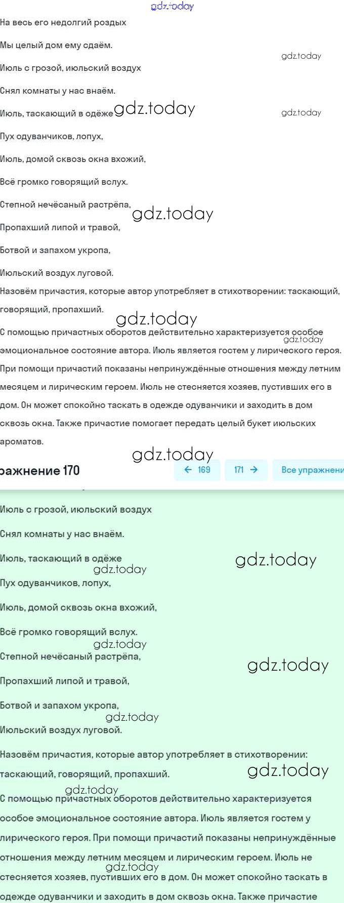 На страницах сайта gdz.today вы найдете учебный и вспомогательный материал, направленный на улучшения знаний школьной программы. ГДЗ - онлайн мир знаний Решение. Упражнения 170 Учебнику по Русскому языку для 7 класса Баранов, Ладыженская Просвещение, Просвещение 2015, 2022