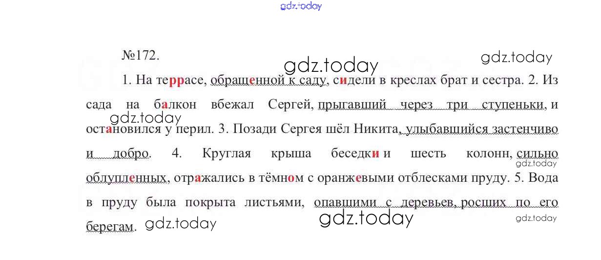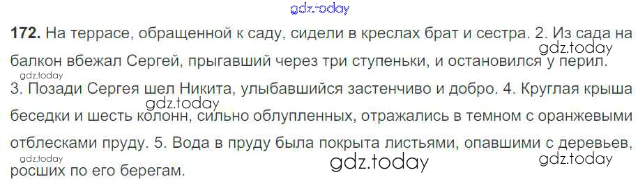 На страницах сайта gdz.today вы найдете учебный и вспомогательный материал, направленный на улучшения знаний школьной программы. ГДЗ - онлайн мир знаний Решение к упражнениям 172 Учебнику по Русскому языку для 7 класса Баранов, Ладыженская Просвещение УМК 2015