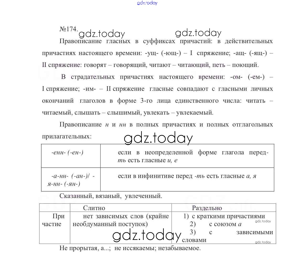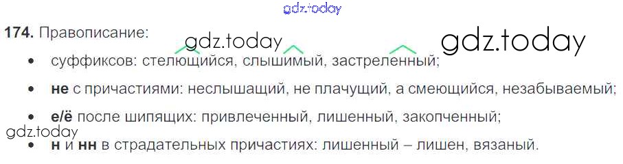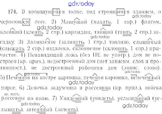 На страницах сайта gdz.today вы найдете учебный и вспомогательный материал, направленный на улучшения знаний школьной программы. ГДЗ - онлайн мир знаний Решение к упражнениям 174 Учебнику по Русскому языку для 7 класса Баранов, Ладыженская Просвещение УМК 2015