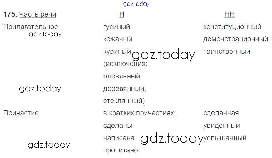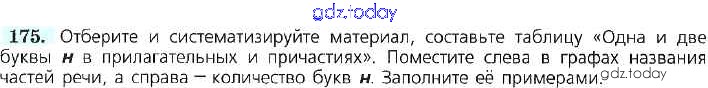 На страницах сайта gdz.today вы найдете учебный и вспомогательный материал, направленный на улучшения знаний школьной программы. ГДЗ - онлайн мир знаний Решение к упражнениям 175 Учебнику по Русскому языку для 7 класса Баранов, Ладыженская Просвещение УМК 2015