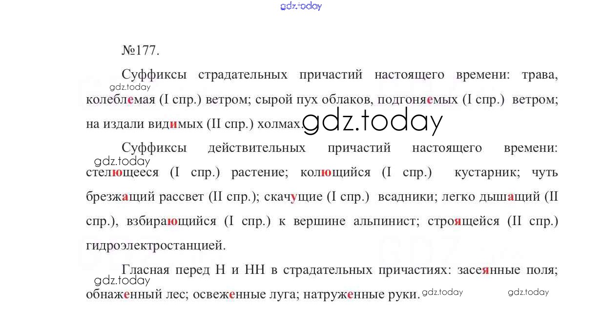 На страницах сайта gdz.today вы найдете учебный и вспомогательный материал, направленный на улучшения знаний школьной программы. ГДЗ - онлайн мир знаний Решение к упражнениям 177 Учебнику по Русскому языку для 7 класса Баранов, Ладыженская Просвещение УМК 2015