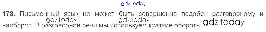 На страницах сайта gdz.today вы найдете учебный и вспомогательный материал, направленный на улучшения знаний школьной программы. ГДЗ - онлайн мир знаний Решение к упражнениям 178 Учебнику по Русскому языку для 7 класса Баранов, Ладыженская Просвещение УМК 2015