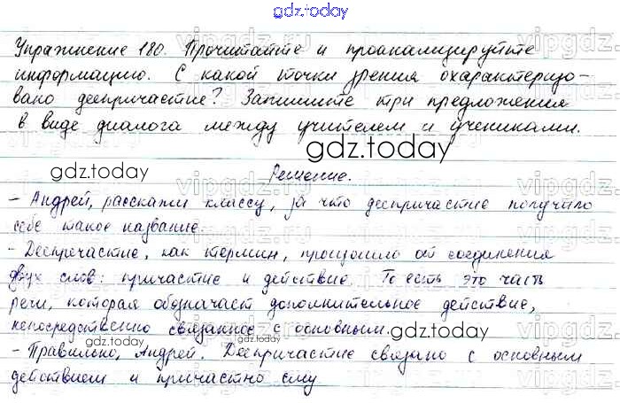 На страницах сайта gdz.today вы найдете учебный и вспомогательный материал, направленный на улучшения знаний школьной программы. ГДЗ - онлайн мир знаний Решение. Упражнения 180 Учебнику по Русскому языку для 7 класса Баранов, Ладыженская Просвещение, Просвещение 2015, 2022