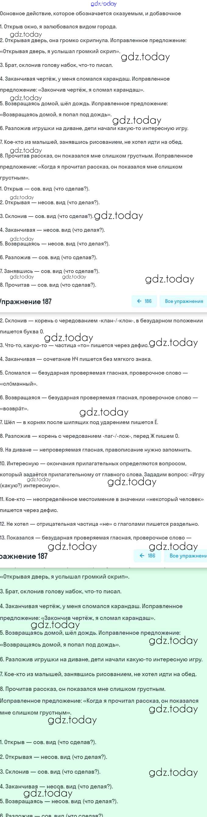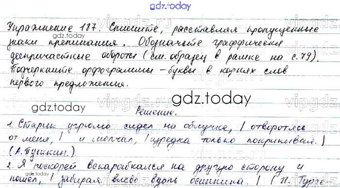 На страницах сайта gdz.today вы найдете учебный и вспомогательный материал, направленный на улучшения знаний школьной программы. ГДЗ - онлайн мир знаний Решение. Упражнения 187 Учебнику по Русскому языку для 7 класса Баранов, Ладыженская Просвещение, Просвещение 2015, 2022