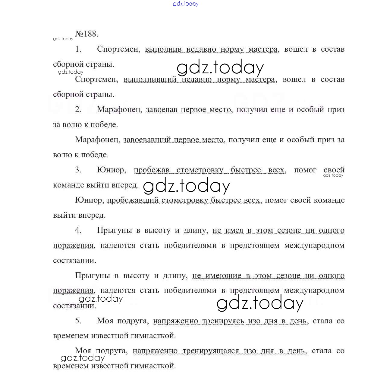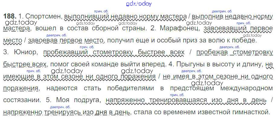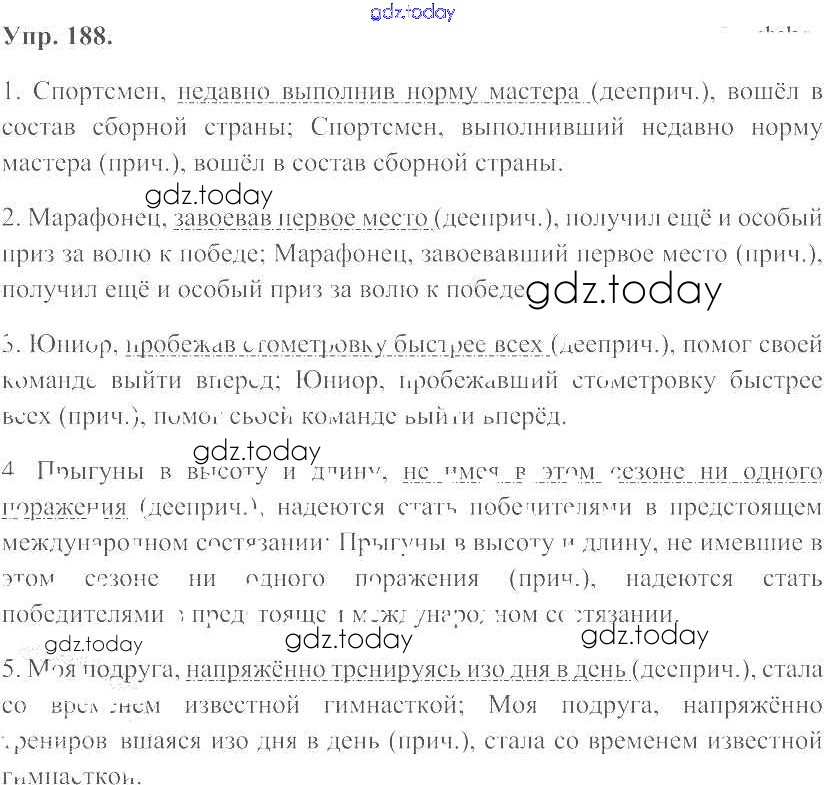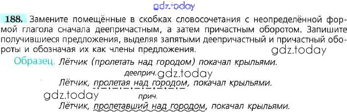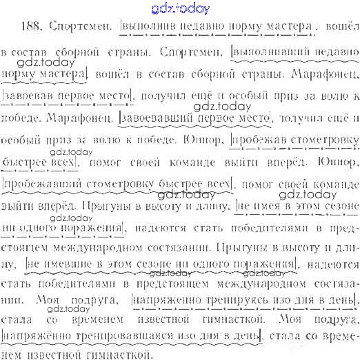 На страницах сайта gdz.today вы найдете учебный и вспомогательный материал, направленный на улучшения знаний школьной программы. ГДЗ - онлайн мир знаний Решение к упражнениям 188 Учебнику по Русскому языку для 7 класса Баранов, Ладыженская Просвещение УМК 2015