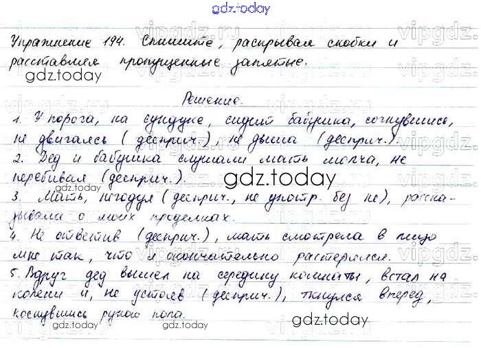 Ответы к Решение. Упражнения 194 Учебнику по Русскому языку для 7 класса Баранов, Ладыженская Просвещение, Просвещение 2015, 2022