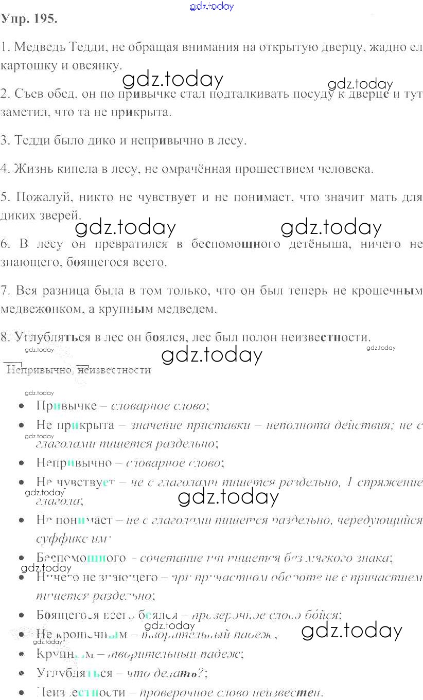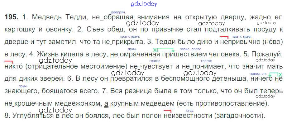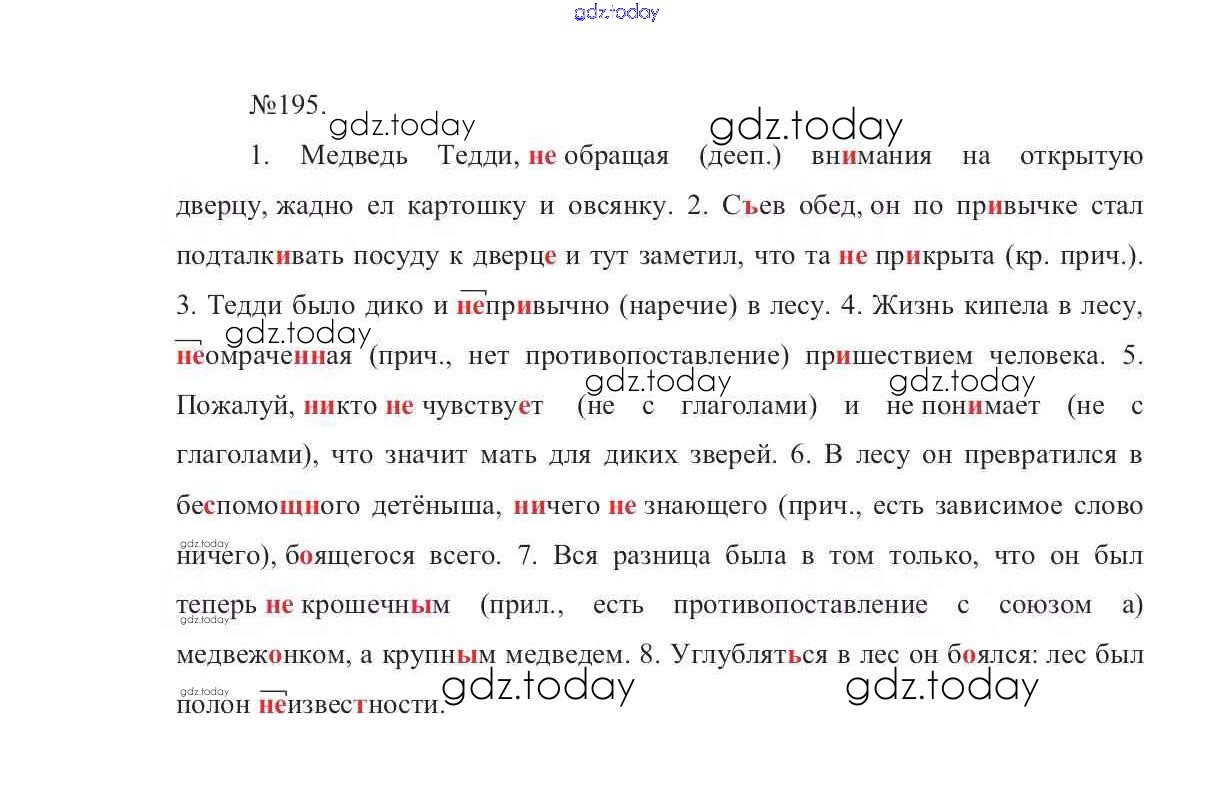 На страницах сайта gdz.today вы найдете учебный и вспомогательный материал, направленный на улучшения знаний школьной программы. ГДЗ - онлайн мир знаний Решение к упражнениям 195 Учебнику по Русскому языку для 7 класса Баранов, Ладыженская Просвещение УМК 2015