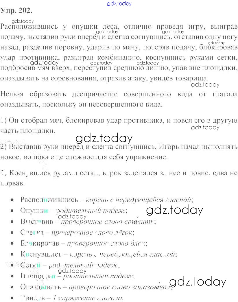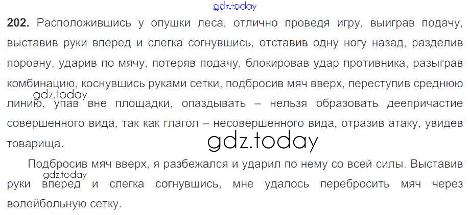 На страницах сайта gdz.today вы найдете учебный и вспомогательный материал, направленный на улучшения знаний школьной программы. ГДЗ - онлайн мир знаний Решение к упражнениям 202 Учебнику по Русскому языку для 7 класса Баранов, Ладыженская Просвещение УМК 2015