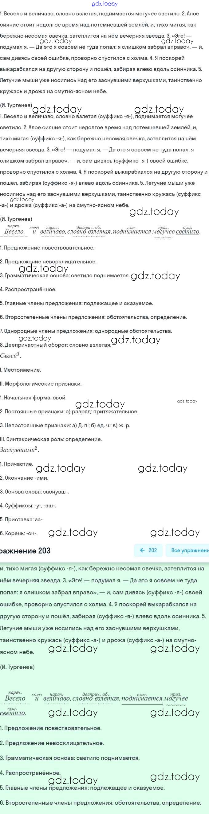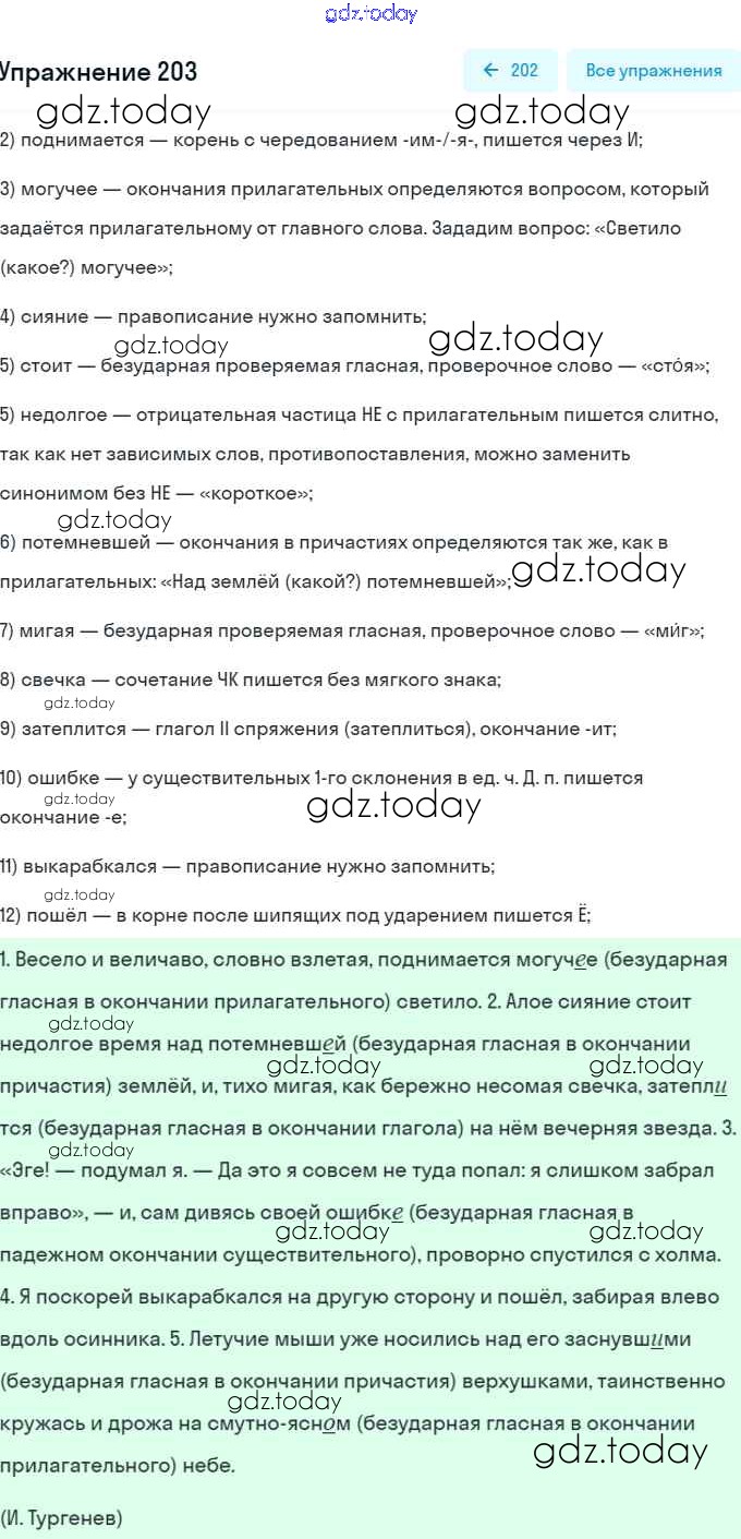 На страницах сайта gdz.today вы найдете учебный и вспомогательный материал, направленный на улучшения знаний школьной программы. ГДЗ - онлайн мир знаний Решение. Упражнения 203 Учебнику по Русскому языку для 7 класса Баранов, Ладыженская Просвещение, Просвещение 2015, 2022