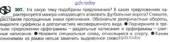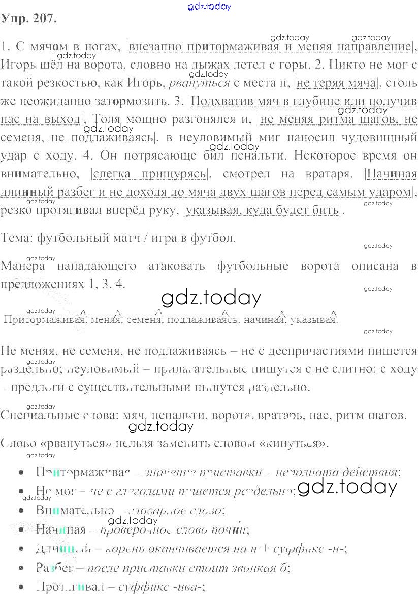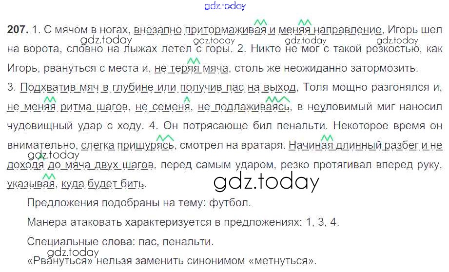 На страницах сайта gdz.today вы найдете учебный и вспомогательный материал, направленный на улучшения знаний школьной программы. ГДЗ - онлайн мир знаний Решение к упражнениям 207 Учебнику по Русскому языку для 7 класса Баранов, Ладыженская Просвещение УМК 2015