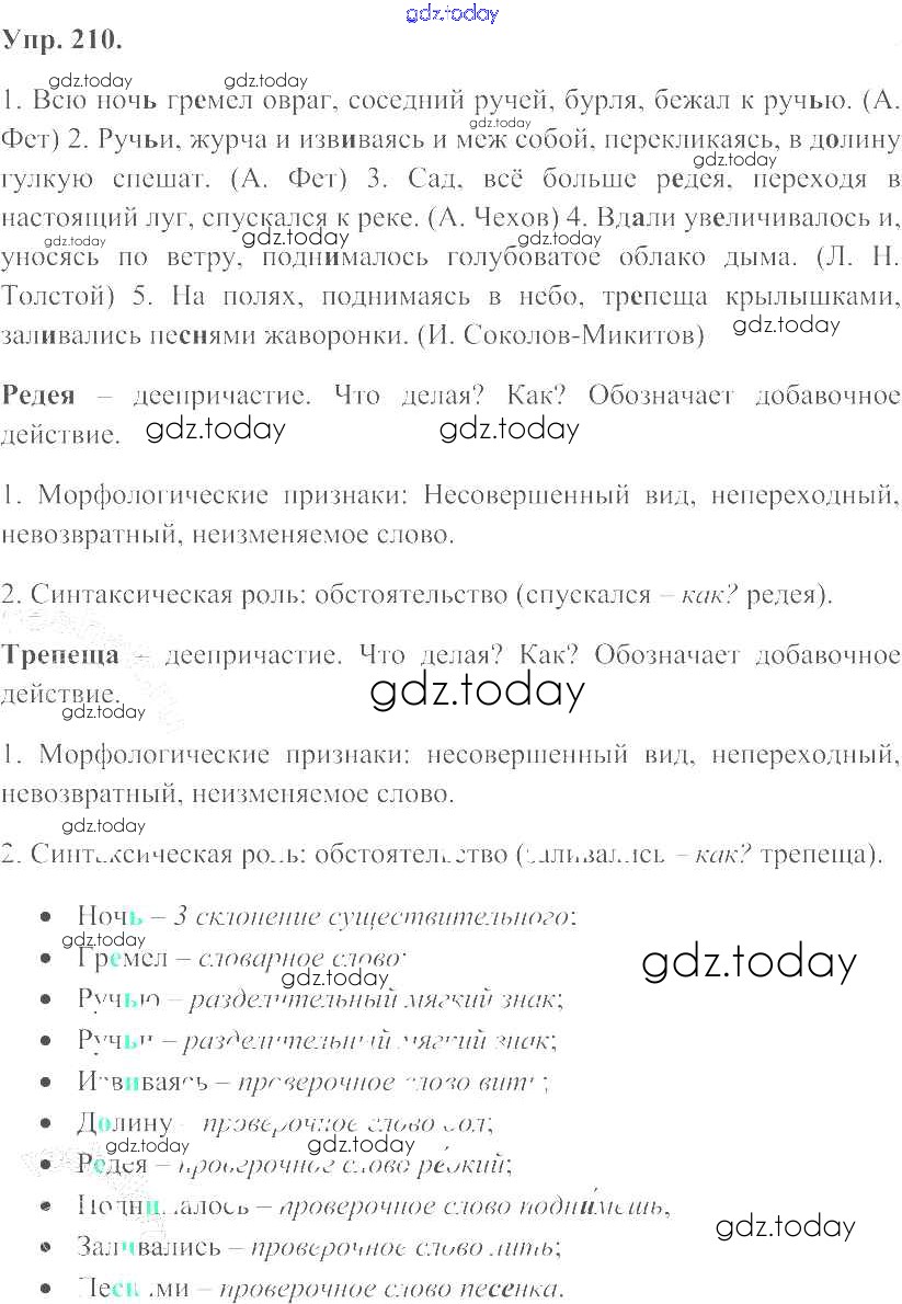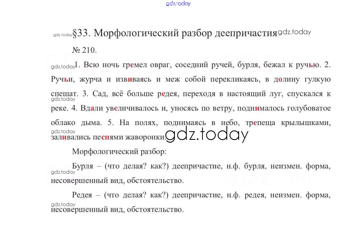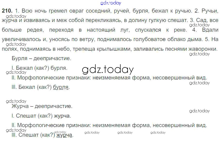 На страницах сайта gdz.today вы найдете учебный и вспомогательный материал, направленный на улучшения знаний школьной программы. ГДЗ - онлайн мир знаний Решение к упражнениям 210 Учебнику по Русскому языку для 7 класса Баранов, Ладыженская Просвещение УМК 2015