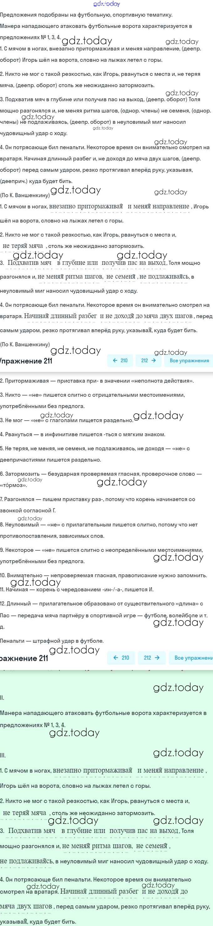 На страницах сайта gdz.today вы найдете учебный и вспомогательный материал, направленный на улучшения знаний школьной программы. ГДЗ - онлайн мир знаний Решение. Упражнения 211 Учебнику по Русскому языку для 7 класса Баранов, Ладыженская Просвещение, Просвещение 2015, 2022
