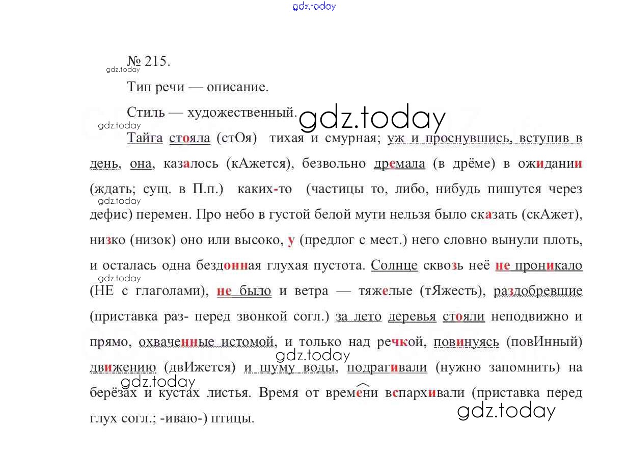 На страницах сайта gdz.today вы найдете учебный и вспомогательный материал, направленный на улучшения знаний школьной программы. ГДЗ - онлайн мир знаний Решение к упражнениям 215 Учебнику по Русскому языку для 7 класса Баранов, Ладыженская Просвещение УМК 2015