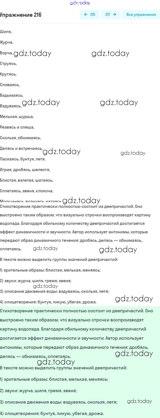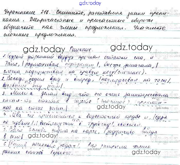 На страницах сайта gdz.today вы найдете учебный и вспомогательный материал, направленный на улучшения знаний школьной программы. ГДЗ - онлайн мир знаний Решение. Упражнения 216 Учебнику по Русскому языку для 7 класса Баранов, Ладыженская Просвещение, Просвещение 2015, 2022