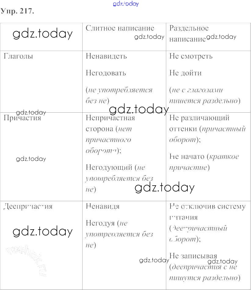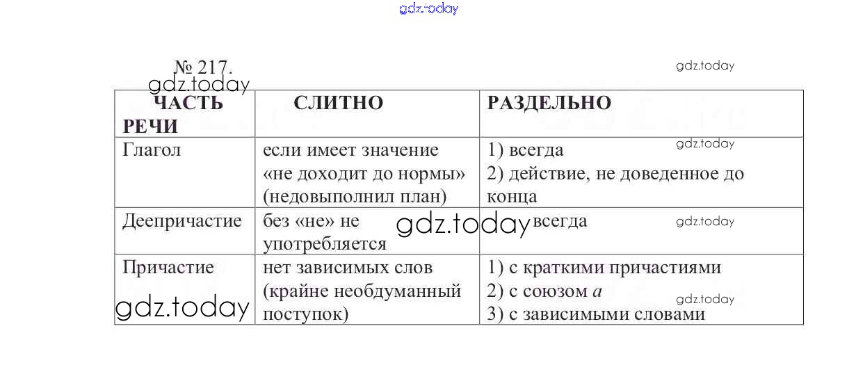 На страницах сайта gdz.today вы найдете учебный и вспомогательный материал, направленный на улучшения знаний школьной программы. ГДЗ - онлайн мир знаний Решение к упражнениям 217 Учебнику по Русскому языку для 7 класса Баранов, Ладыженская Просвещение УМК 2015