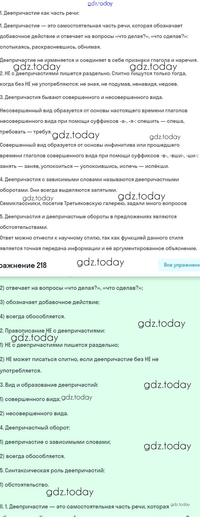 На страницах сайта gdz.today вы найдете учебный и вспомогательный материал, направленный на улучшения знаний школьной программы. ГДЗ - онлайн мир знаний Решение. Упражнения 218 Учебнику по Русскому языку для 7 класса Баранов, Ладыженская Просвещение, Просвещение 2015, 2022