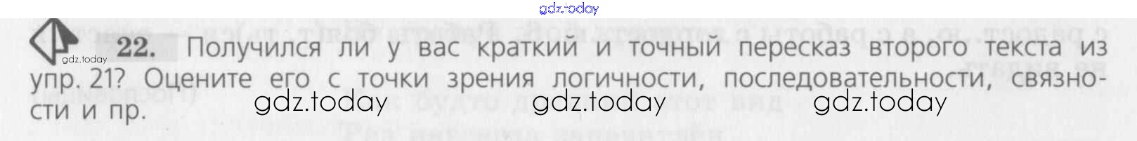 На страницах сайта gdz.today вы найдете учебный и вспомогательный материал, направленный на улучшения знаний школьной программы. ГДЗ - онлайн мир знаний Решение к упражнениям 22 Учебнику по Русскому языку для 7 класса Баранов, Ладыженская Просвещение УМК 2015