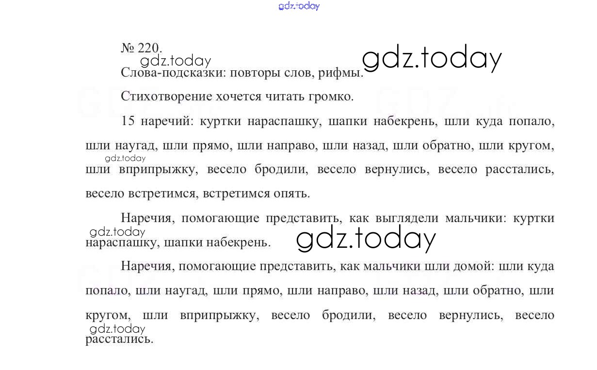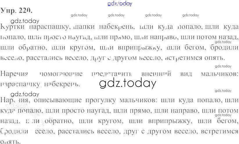 На страницах сайта gdz.today вы найдете учебный и вспомогательный материал, направленный на улучшения знаний школьной программы. ГДЗ - онлайн мир знаний Решение к упражнениям 220 Учебнику по Русскому языку для 7 класса Баранов, Ладыженская Просвещение УМК 2015