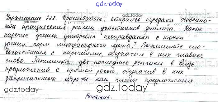 Ответы к Решение. Упражнения 222 Учебнику по Русскому языку для 7 класса Баранов, Ладыженская Просвещение, Просвещение 2015, 2022