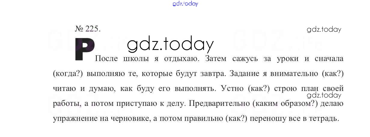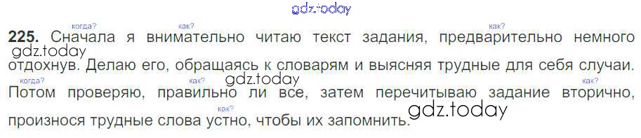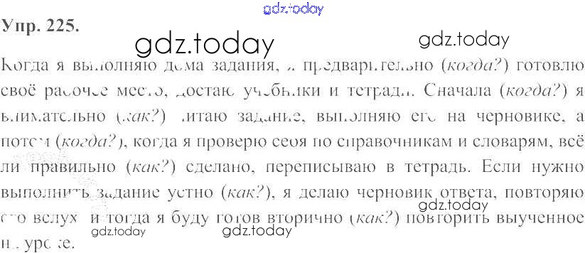 На страницах сайта gdz.today вы найдете учебный и вспомогательный материал, направленный на улучшения знаний школьной программы. ГДЗ - онлайн мир знаний Решение к упражнениям 225 Учебнику по Русскому языку для 7 класса Баранов, Ладыженская Просвещение УМК 2015