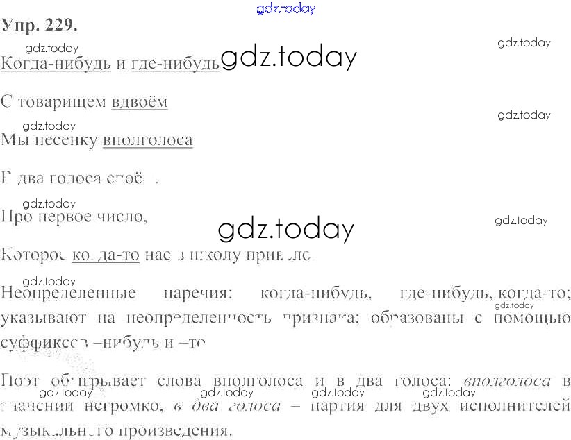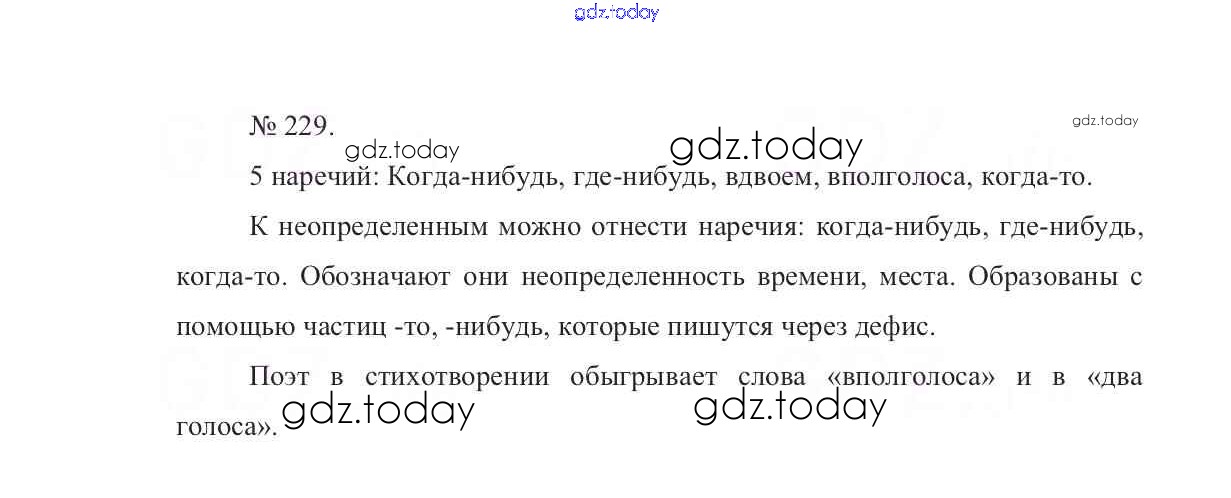 На страницах сайта gdz.today вы найдете учебный и вспомогательный материал, направленный на улучшения знаний школьной программы. ГДЗ - онлайн мир знаний Решение к упражнениям 229 Учебнику по Русскому языку для 7 класса Баранов, Ладыженская Просвещение УМК 2015
