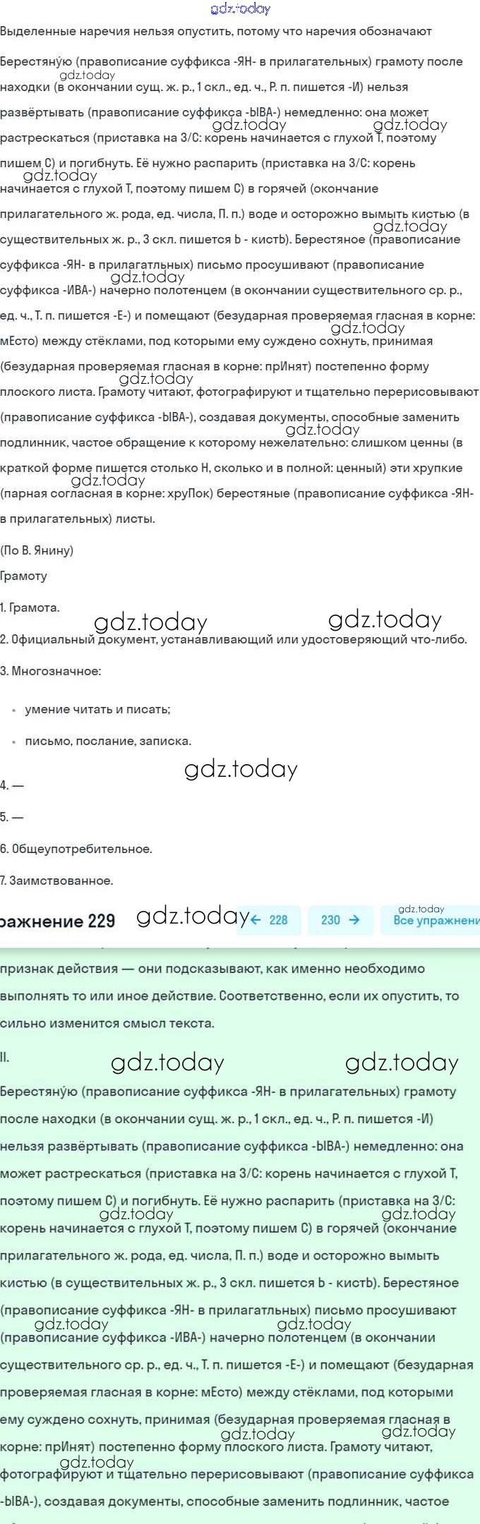 На страницах сайта gdz.today вы найдете учебный и вспомогательный материал, направленный на улучшения знаний школьной программы. ГДЗ - онлайн мир знаний Решение. Упражнения 229 Учебнику по Русскому языку для 7 класса Баранов, Ладыженская Просвещение, Просвещение 2015, 2022