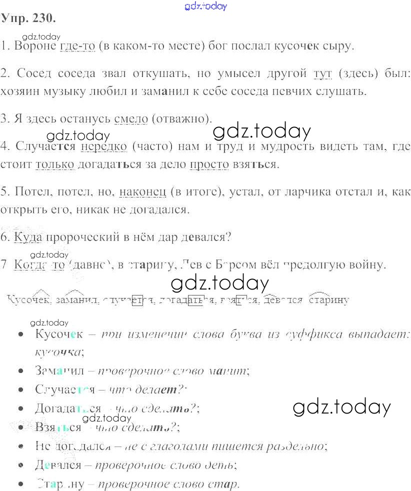 На страницах сайта gdz.today вы найдете учебный и вспомогательный материал, направленный на улучшения знаний школьной программы. ГДЗ - онлайн мир знаний Решение к упражнениям 230 Учебнику по Русскому языку для 7 класса Баранов, Ладыженская Просвещение УМК 2015