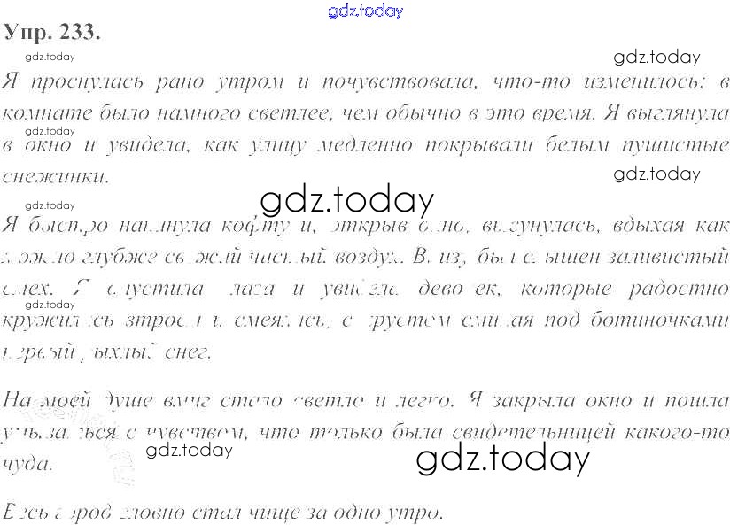 На страницах сайта gdz.today вы найдете учебный и вспомогательный материал, направленный на улучшения знаний школьной программы. ГДЗ - онлайн мир знаний Решение к упражнениям 233 Учебнику по Русскому языку для 7 класса Баранов, Ладыженская Просвещение УМК 2015