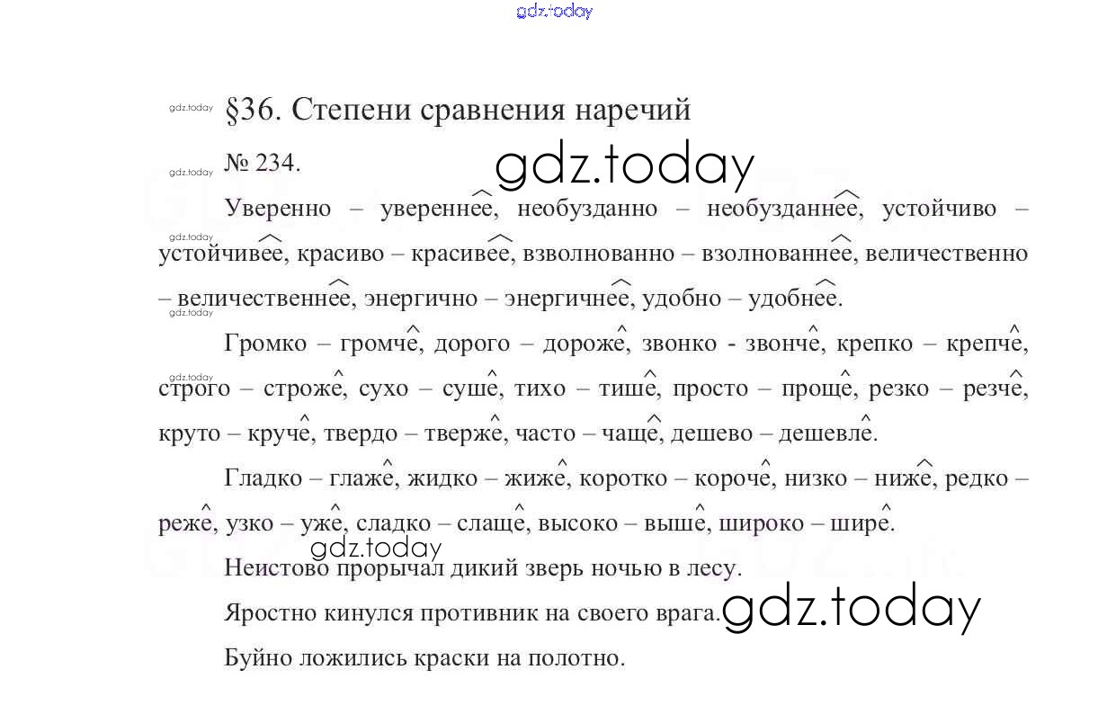 На страницах сайта gdz.today вы найдете учебный и вспомогательный материал, направленный на улучшения знаний школьной программы. ГДЗ - онлайн мир знаний Решение к упражнениям 234 Учебнику по Русскому языку для 7 класса Баранов, Ладыженская Просвещение УМК 2015