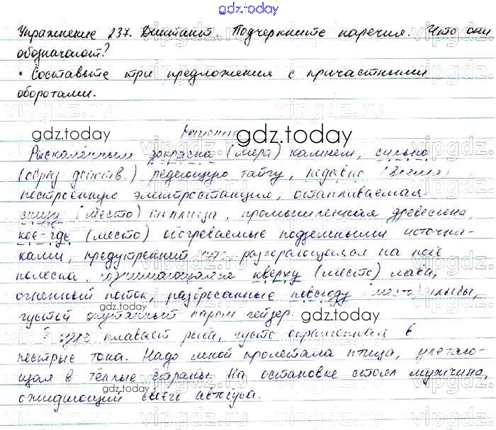 На страницах сайта gdz.today вы найдете учебный и вспомогательный материал, направленный на улучшения знаний школьной программы. ГДЗ - онлайн мир знаний Решение. Упражнения 237 Учебнику по Русскому языку для 7 класса Баранов, Ладыженская Просвещение, Просвещение 2015, 2022