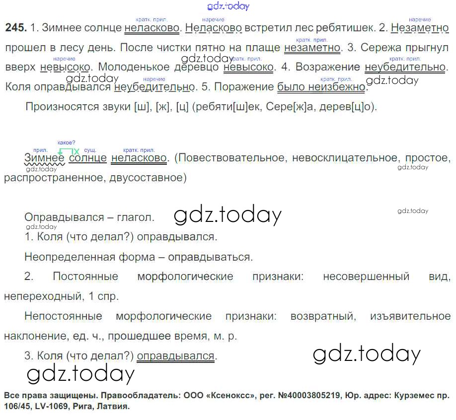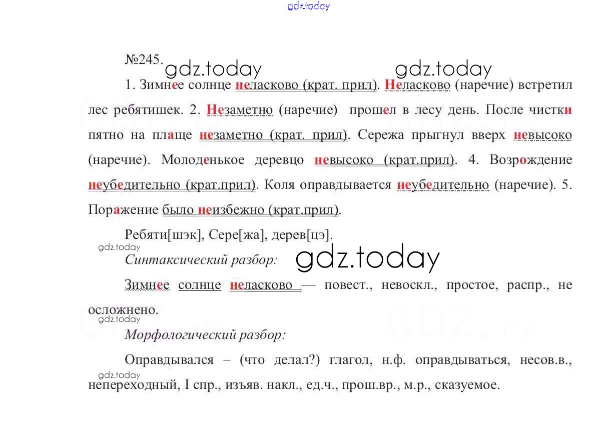 На страницах сайта gdz.today вы найдете учебный и вспомогательный материал, направленный на улучшения знаний школьной программы. ГДЗ - онлайн мир знаний Решение к упражнениям 245 Учебнику по Русскому языку для 7 класса Баранов, Ладыженская Просвещение УМК 2015