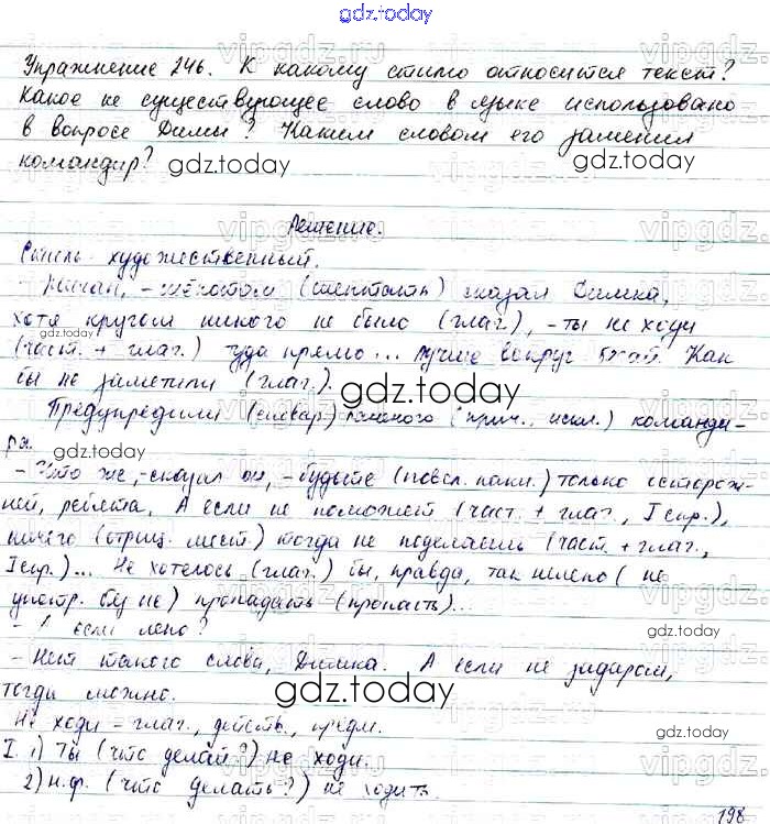 На страницах сайта gdz.today вы найдете учебный и вспомогательный материал, направленный на улучшения знаний школьной программы. ГДЗ - онлайн мир знаний Решение. Упражнения 246 Учебнику по Русскому языку для 7 класса Баранов, Ладыженская Просвещение, Просвещение 2015, 2022