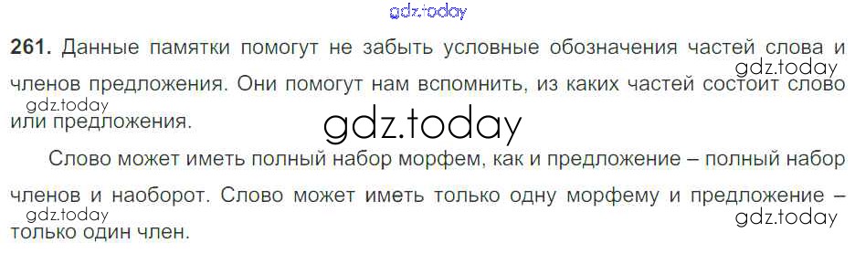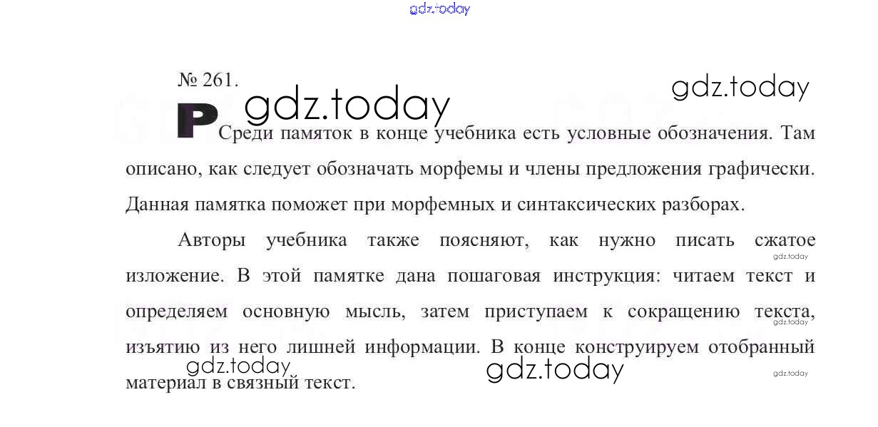 На страницах сайта gdz.today вы найдете учебный и вспомогательный материал, направленный на улучшения знаний школьной программы. ГДЗ - онлайн мир знаний Решение к упражнениям 261 Учебнику по Русскому языку для 7 класса Баранов, Ладыженская Просвещение УМК 2015