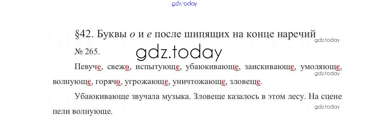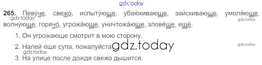 На страницах сайта gdz.today вы найдете учебный и вспомогательный материал, направленный на улучшения знаний школьной программы. ГДЗ - онлайн мир знаний Решение к упражнениям 265 Учебнику по Русскому языку для 7 класса Баранов, Ладыженская Просвещение УМК 2015