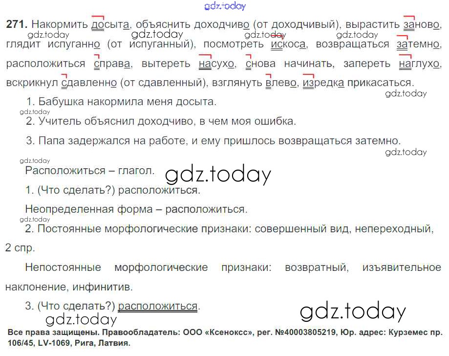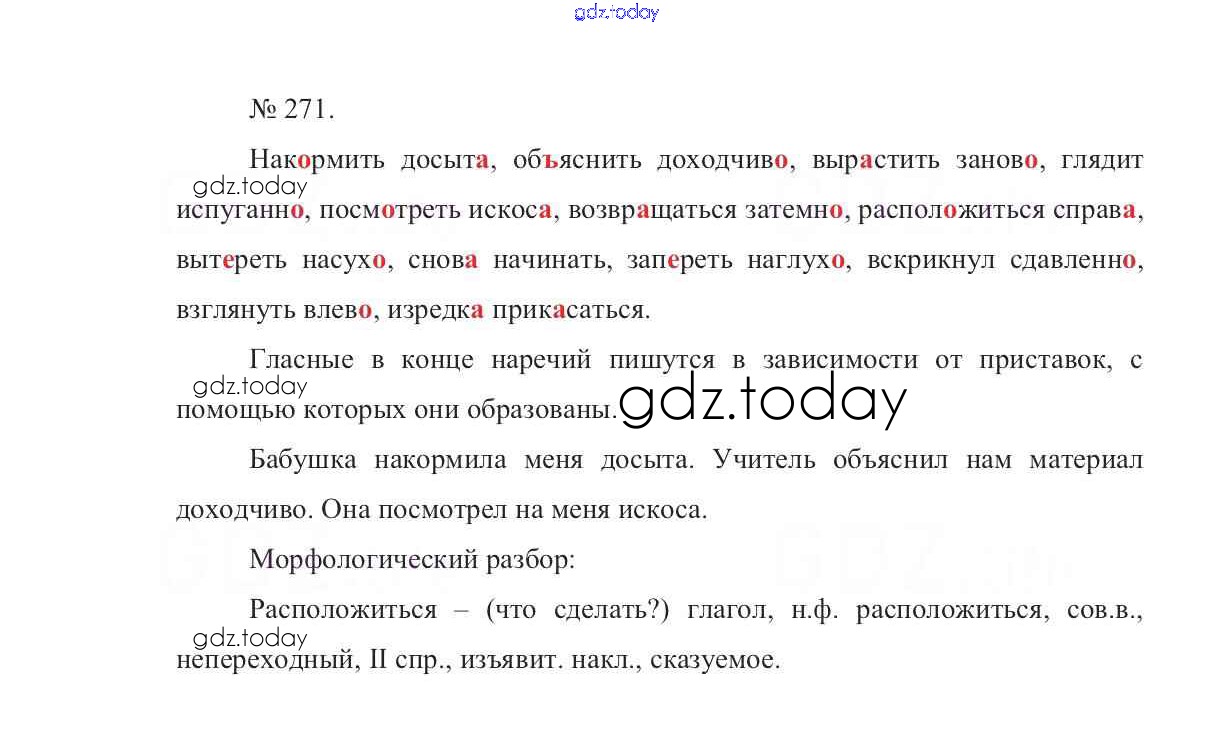 На страницах сайта gdz.today вы найдете учебный и вспомогательный материал, направленный на улучшения знаний школьной программы. ГДЗ - онлайн мир знаний Решение к упражнениям 271 Учебнику по Русскому языку для 7 класса Баранов, Ладыженская Просвещение УМК 2015